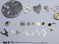 拆解機芯,用超聲波清洗機徹底清洗各個零部件。